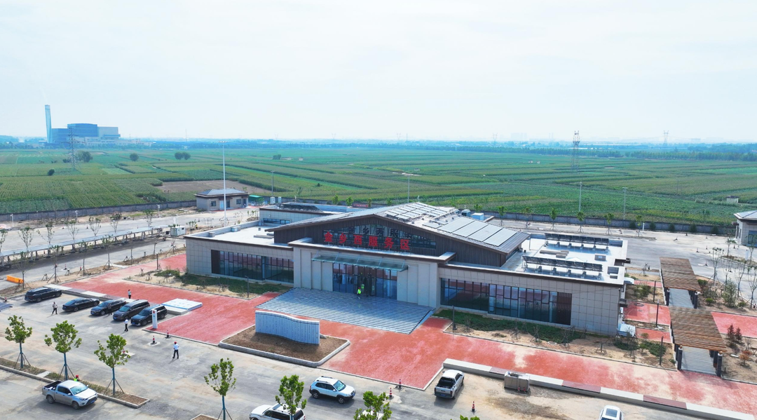 在工程现场,该项目积极践行“交能融合”理念,发展交通运输领域的新质生产力,加快推动高速公路房建工程向绿色低碳转型升级,采取“高速公路+新能源”同步建设模式,通过“源网荷储”一体化设计,集成光伏发电、微电网系统等新能源技术,致力于打造全生命周期零碳样板。阳光下,金乡西服务区屋面一排排整齐的太阳能板熠熠生辉,未来投运后,服务区将成为“绿色超充补能驿站”,将为驶入的新能源车辆提供便捷的“光储充一体”绿色服务。